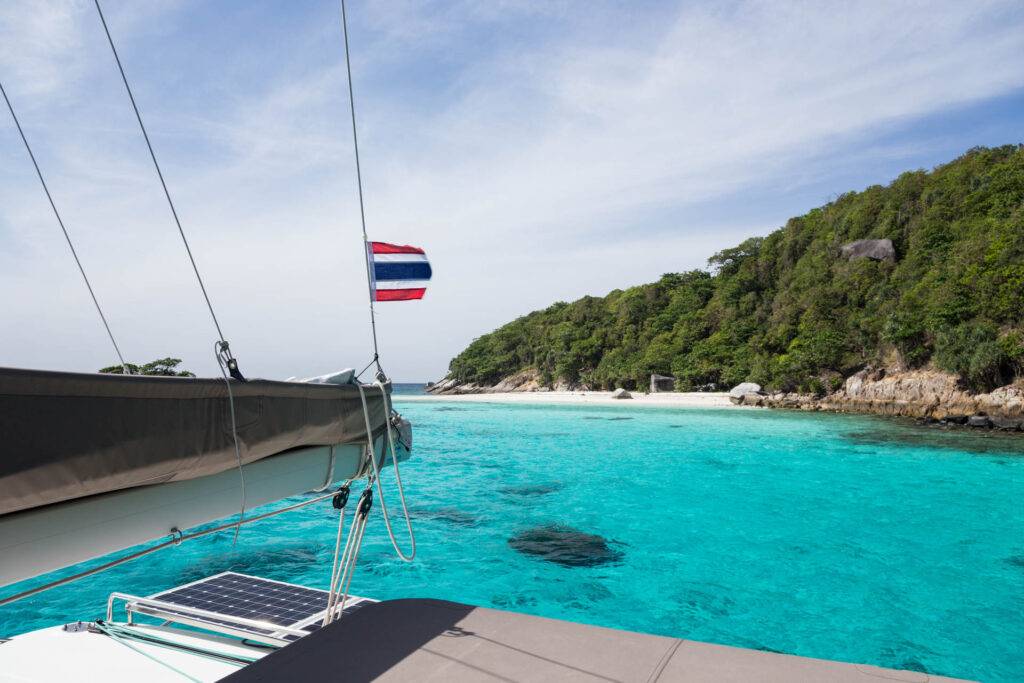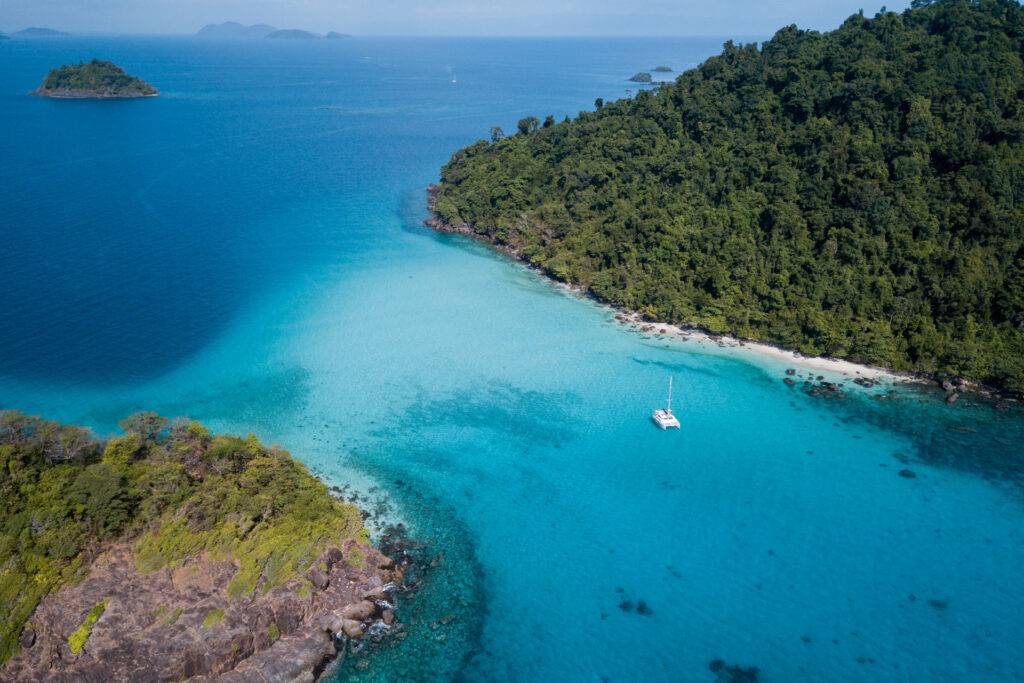 Wir segeln 10 Tage in türkis-blauem Wasser auf einem Katamaran von Koh Chang in den Koh Rang Nationalpark bis zur Insel Koh Kood. Auf unserem Törn segeln wir entlang von vielen kleinen, wunderschönen Inseln. Wir besuchen tropische Wasserfälle, beobachten Affen und Rehe an den Stränden oder exotische Fische und Schildkröten unter Wasser.